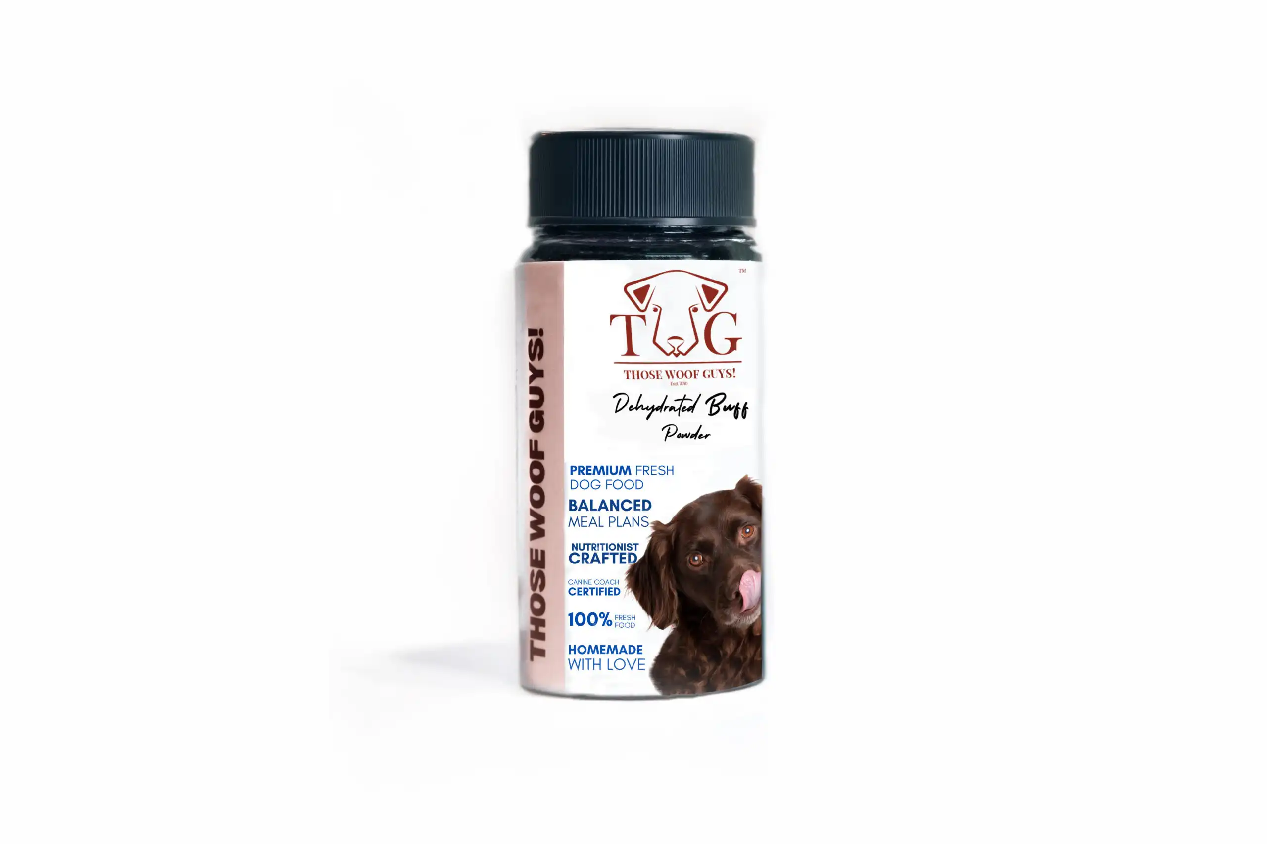 The pièce de résistance! Dehydrated fresh lean buffalo meat, gently cooked for seventy two hours, and then ground up into a fine powder to lock in all the nutrition, all you need is to put in a spoonful into your buddy’s diet to build those super muscles!